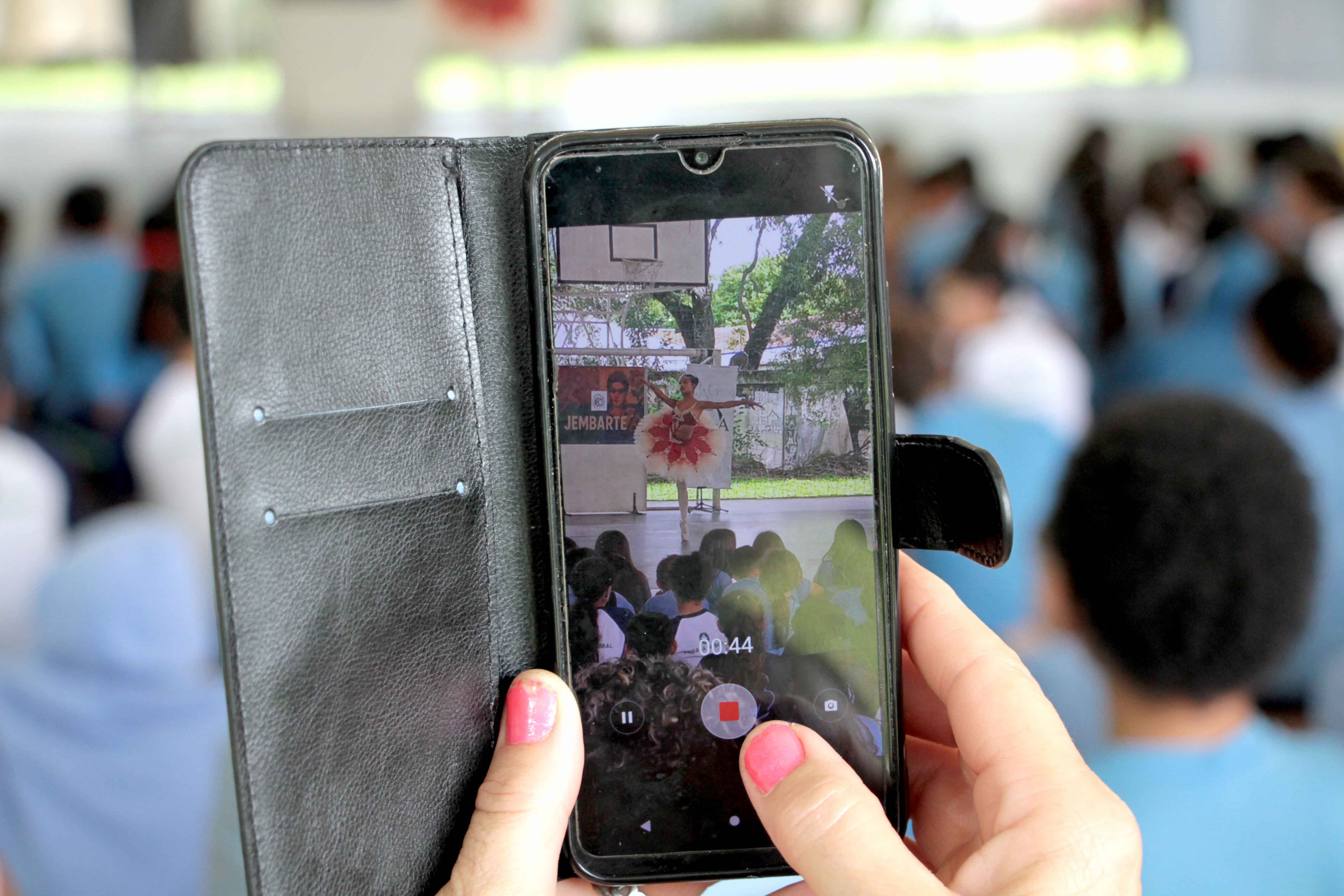 Professora de Artes do Colégio Maria Balbina, Maria Alice exaltou a apresentação da EDTG na Escola Foto: Anderson Tozato / SEEC