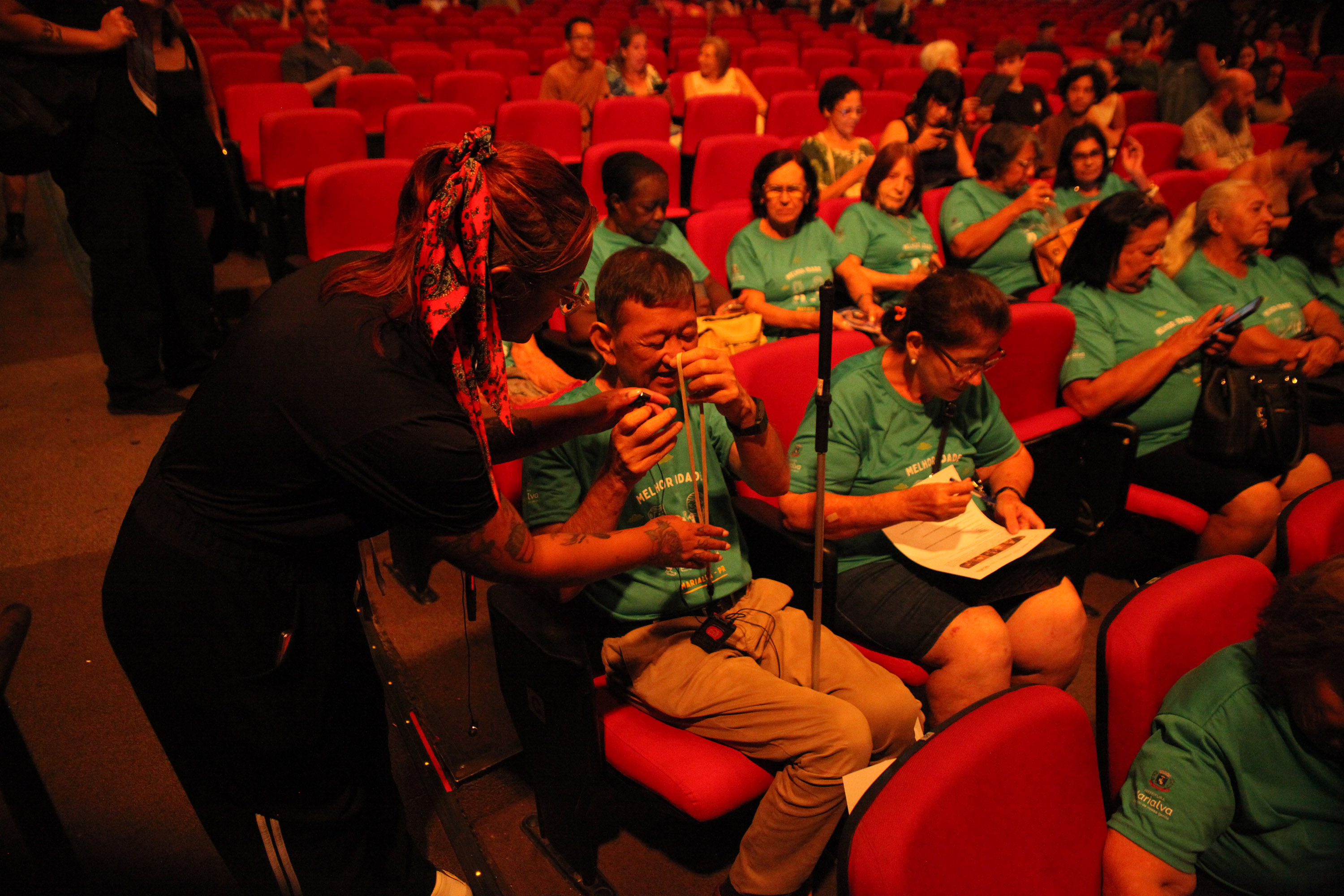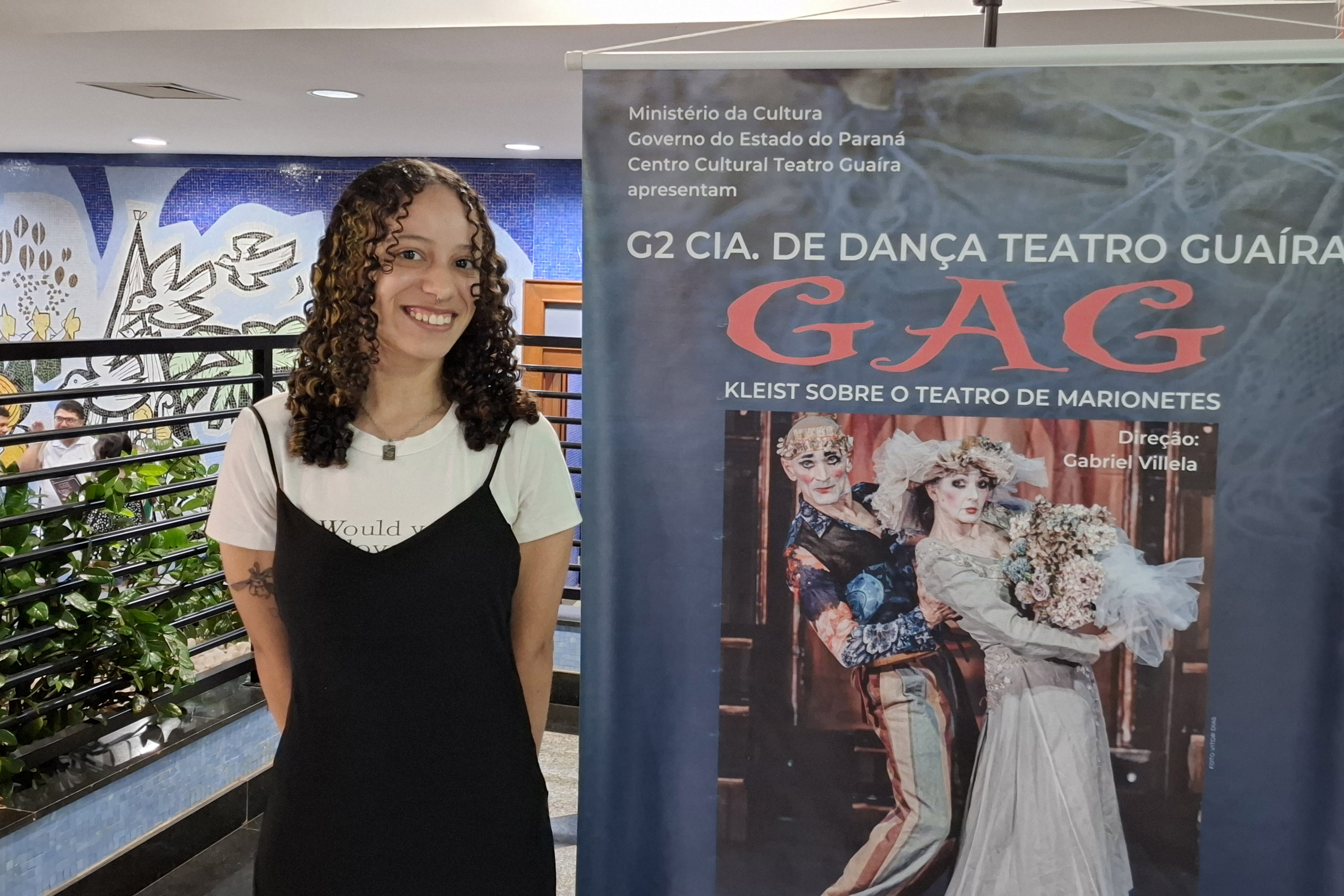 Estreia da temporada 2026 da G2 Cia de Dança emociona o público de Maringá. Na imagem, a estudante Maria Eduarda Oliveira, de 10 anos, com mãe, contou que se impressionou com a forma como os bailarinos incorporam a ideia das marionetes na cena.