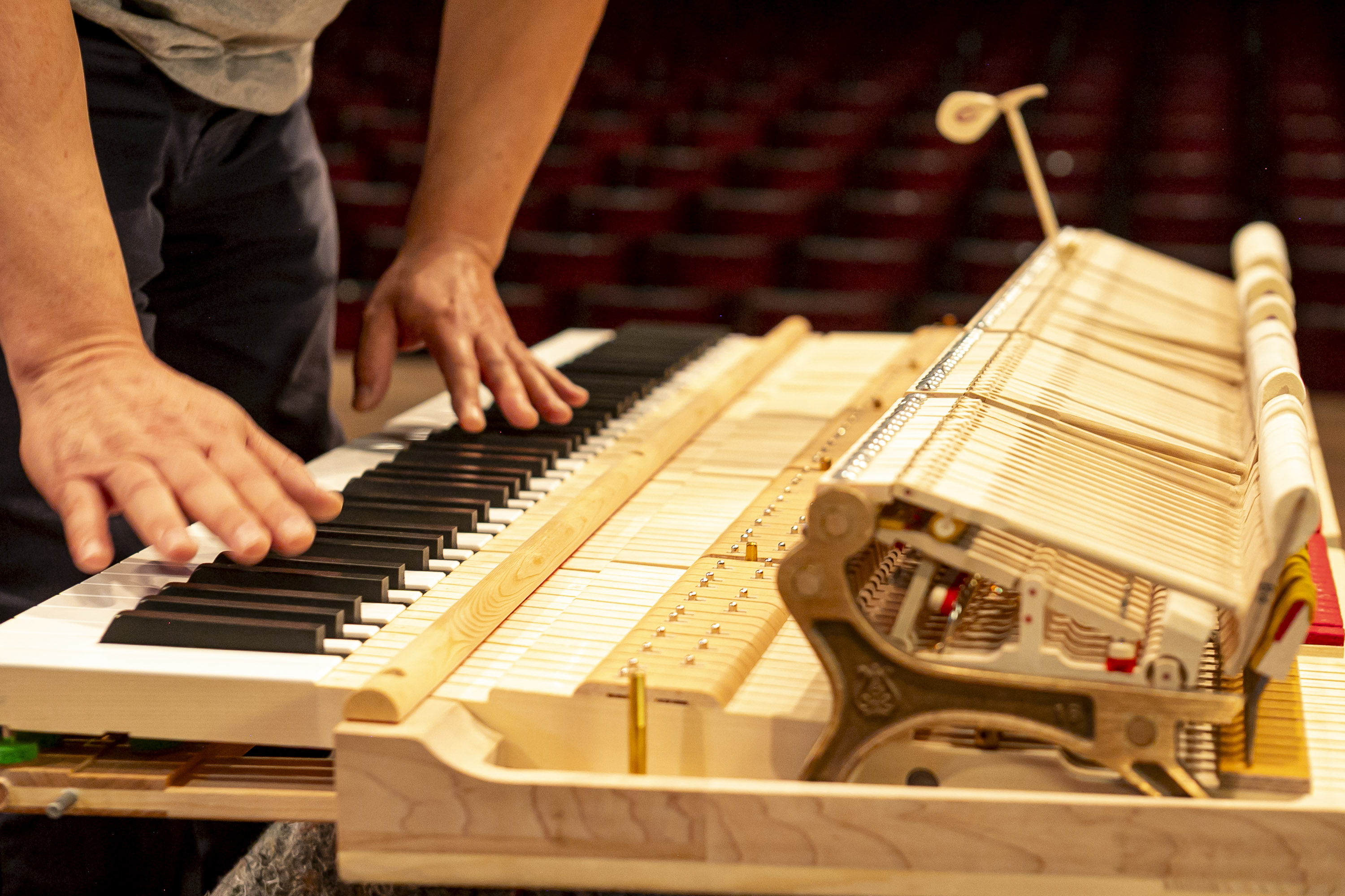 Montagem do novo piano da Orquestra Sinfônica do Paraná levou três dias para ficar concluído. Novo instrumento será apresetnado ao público em março. Foto: Roberto Dziura Jr