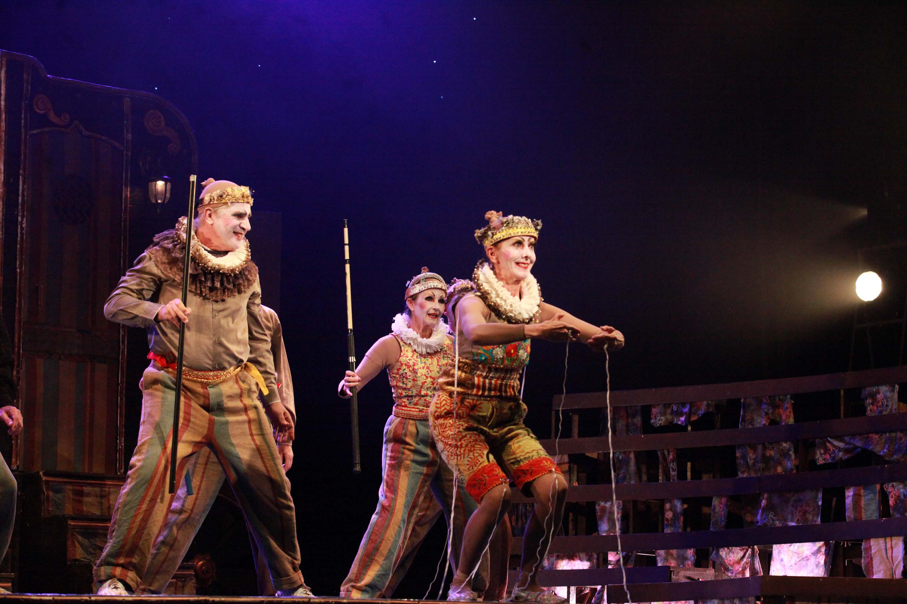 Dirigido por Gabriel Villela, com direção adjunta de Ivan Andrade, o trabalho faz referência às gags — performances humorísticas populares do universo dramatúrgico circense. Em cena, os bailarinos incorporam a metáfora das marionetes para refletir sobre a condição existencial do ser humano.