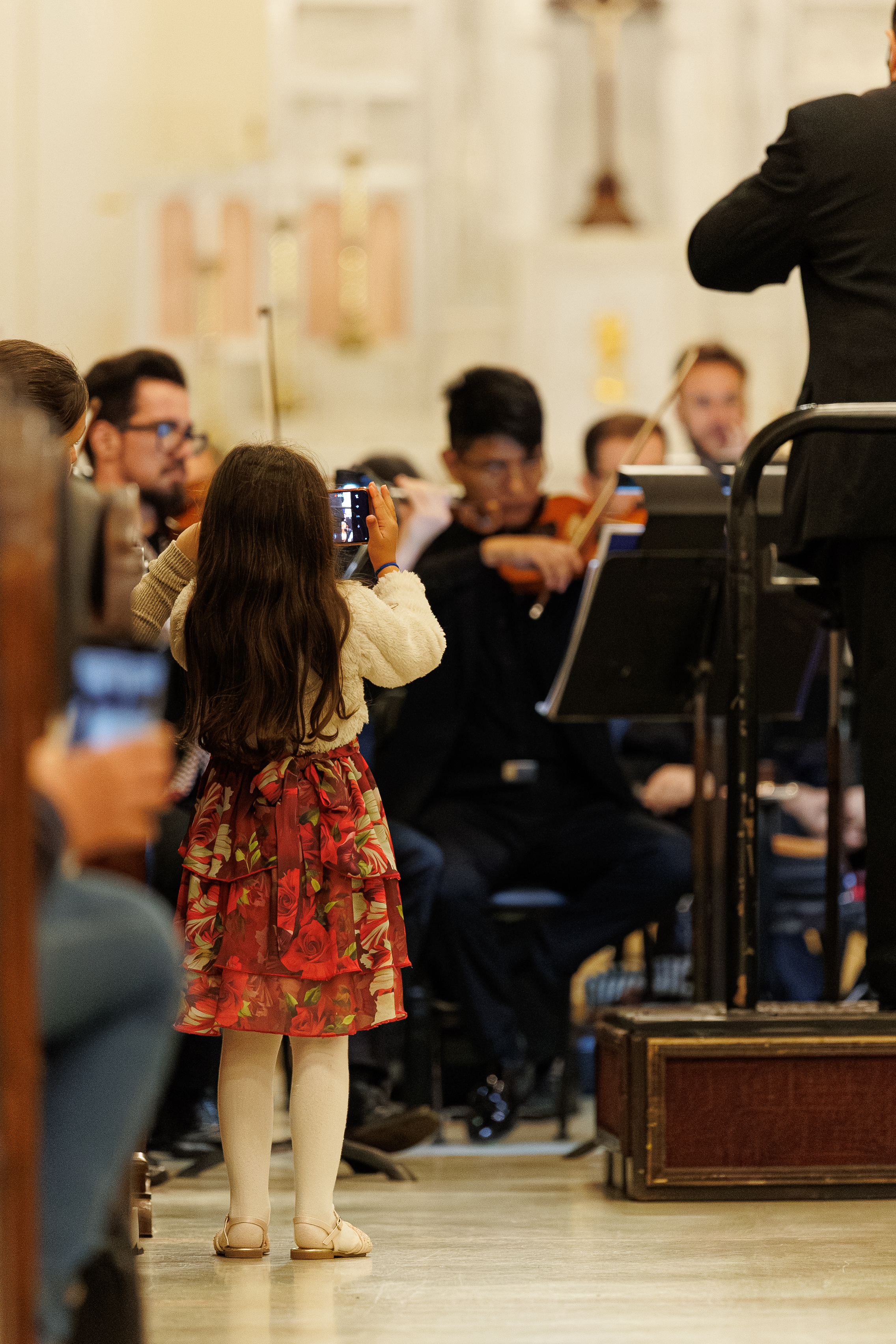 “Tocar numa igreja é muito diferente, faz um eco muito grande. Quando a gente acaba de tocar, ainda sente o som andando pelo ar”, contou. O maestro destacou a rapidez com que os músicos absorveram essas particularidades sonoras. “Foi incrível, porque eles se adaptaram muito rápido. Na primeira música, é questão de dois, três compassos, a orquestra já está dentro do ar da acústica.”
