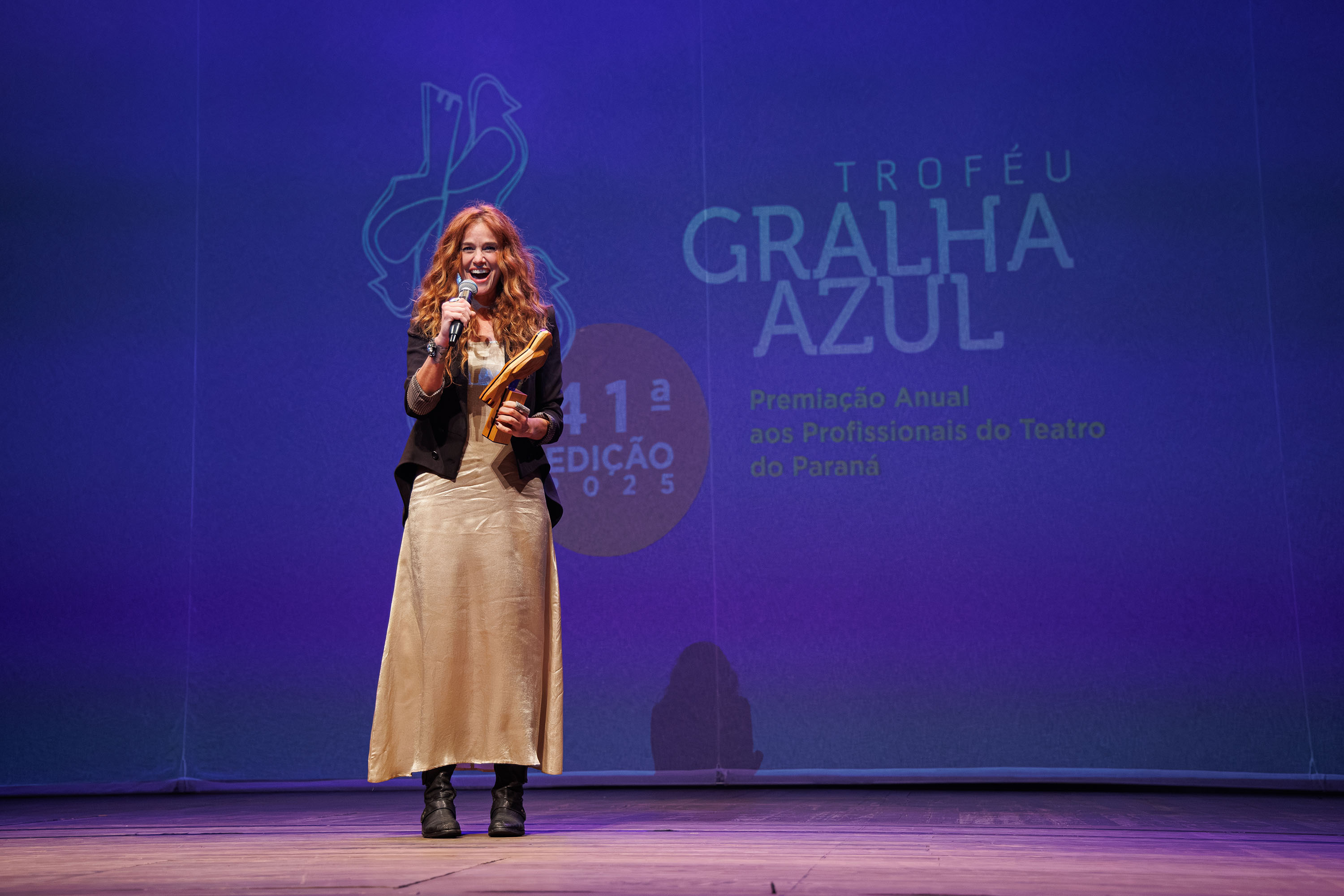 A noite desta segunda-feira (1º) foi de celebração no Auditório Salvador de Ferrante (Guairinha), em Curitiba, durante a cerimônia da 41ª edição do Troféu Gralha Azul. A premiação, que comemora meio século de história, consagrou a diversidade e a descentralização da cena teatral paranaense, premiando espetáculos e profissionais da Capital e de outros municípios do Paraná.Foram 63 espetáculos inscritos e 34 homologados e avaliados. Ao todo, a premiação contemplou 17 categorias, entre elas melhor Espetáculo, Direção, Atriz, Ator, Dramaturgia e Revelação, além das indicações especiais feitas pelo Centro Cultural Teatro Guaíra, com apoio do Sindicato dos Artistas e Técnicos em Espetáculos de Diversões do Estado do Paraná (Sated/PR) e do Sindicato dos Empresários e Produtores em Espetáculos de Diversões no Estado do Paraná (Seped/PR).